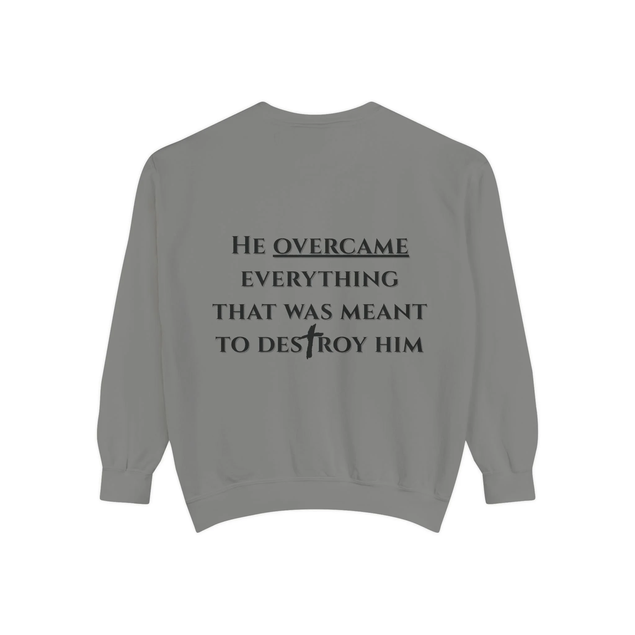 He Overcame Sweatshirt — Unisex Minimalist Fleece Pullover